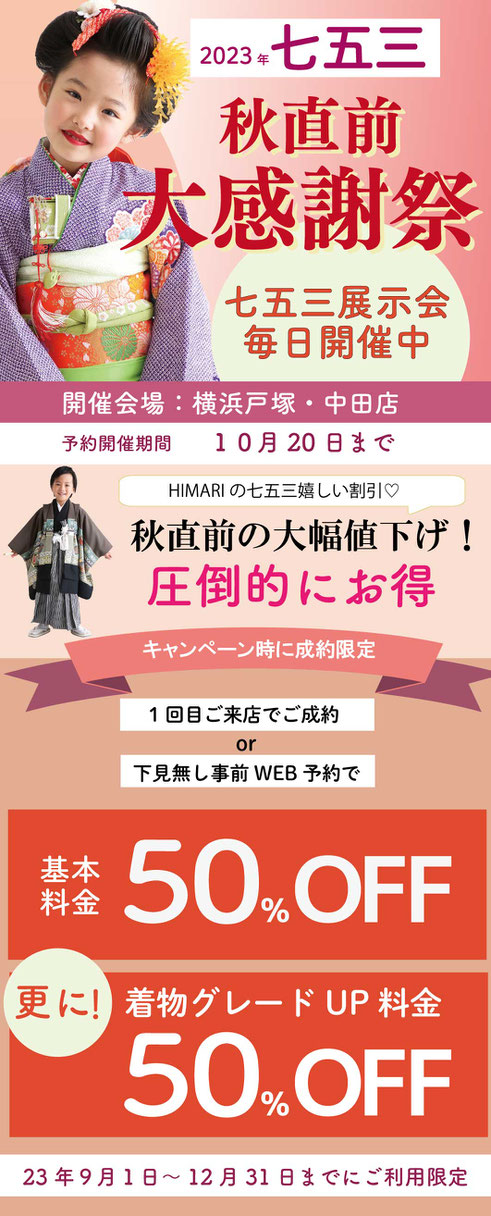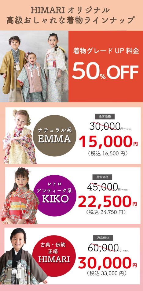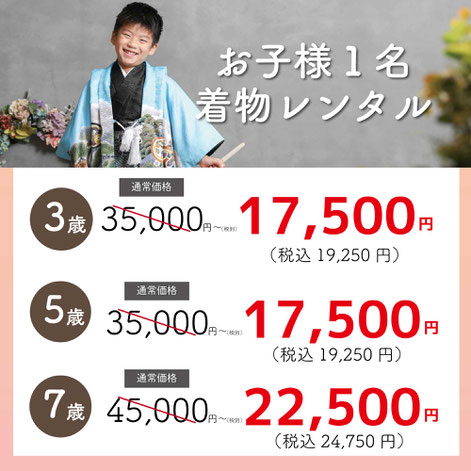 七五三お子様1名着物レンタル基本料金が半額!お得なキャンペーン実施中!